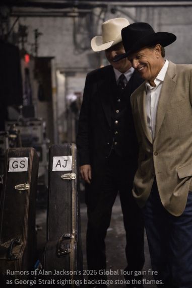 Alan Jackson Sets the World on Fire with His Unstoppable 2026 Global Tour. Alan Jackson—2026 Global Tour… and George Strait might join.” Nobody believes it—until a blurry clip appears of two guitar cases backstage, side by side, with “AJ” and “GS” taped on the handles.