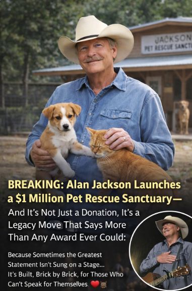 In a world that often measures artists by trophies, ticket sales, and streaming numbers, the most revealing moments are usually the ones that never happen onstage. That’s why the headline “BREAKING: Alan Jackson Launches $1 Million Pet Rescue Sanctuary lands with such unexpected force. Not because it sounds flashy—but because it sounds like Alan Jackson. Practical. Compassionate. Rooted in something older than fame: responsibility.