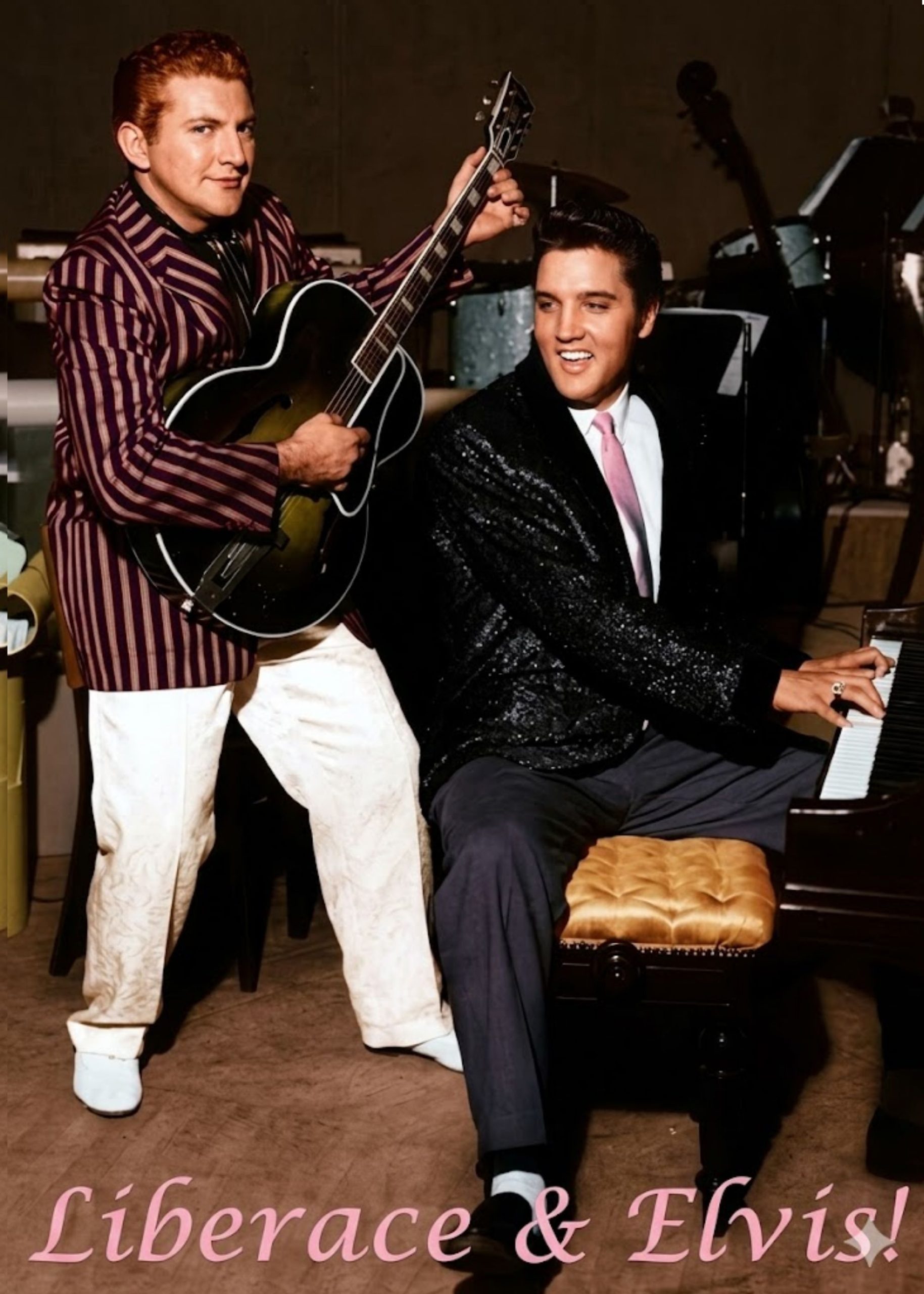In 1956 Las Vegas, two eras collided under the same glittering lights. On one side stood Liberace—the undisputed king of elegance, mastery, and classical showmanship. On the other stood Elvis Presley—young, electrifying, and dismissed by critics as nothing more than a rebellious voice wrapped in charm. To many, he was a sensation… but not a serious musician.